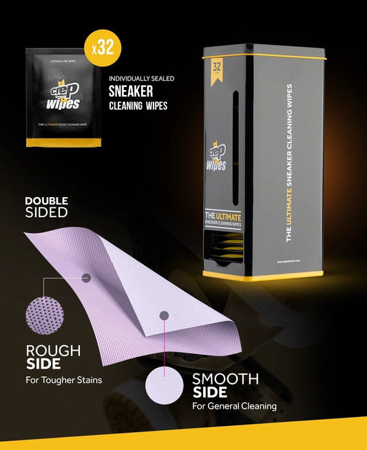 Crep Protect Ultimate Sneakers and Shoes Cleaning Wipes (32 Pack) Footwear Boot Slides Care for Unisex Adult Mens Womens Kids GS Youth Hypebeast